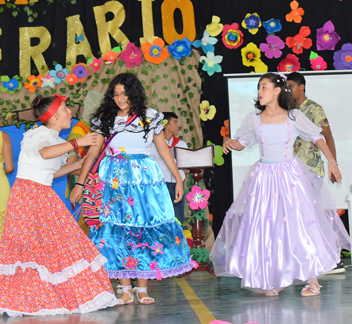 Para el acto de cierre se realizó la actuación de una de las escenas más representativas de la película encanto y el tema “No se habla de Bruno”.