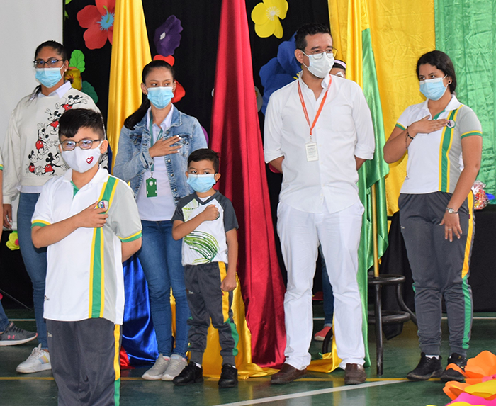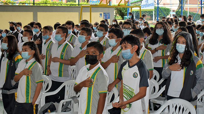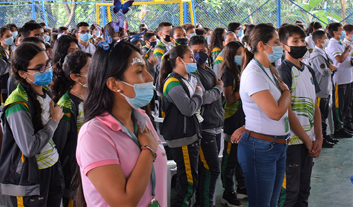 Con una colorida y muy florecida izada de bandera se conmemoró el Día del Idioma en nuestro Colegio Franciscano Jiménez de Cisneros, evento que contó con presentaciones culturales por parte de las secciones de preescolar, primaria y bachillerato, y el reconocimiento a los alumnos más destacados en el área de lengua castellana.